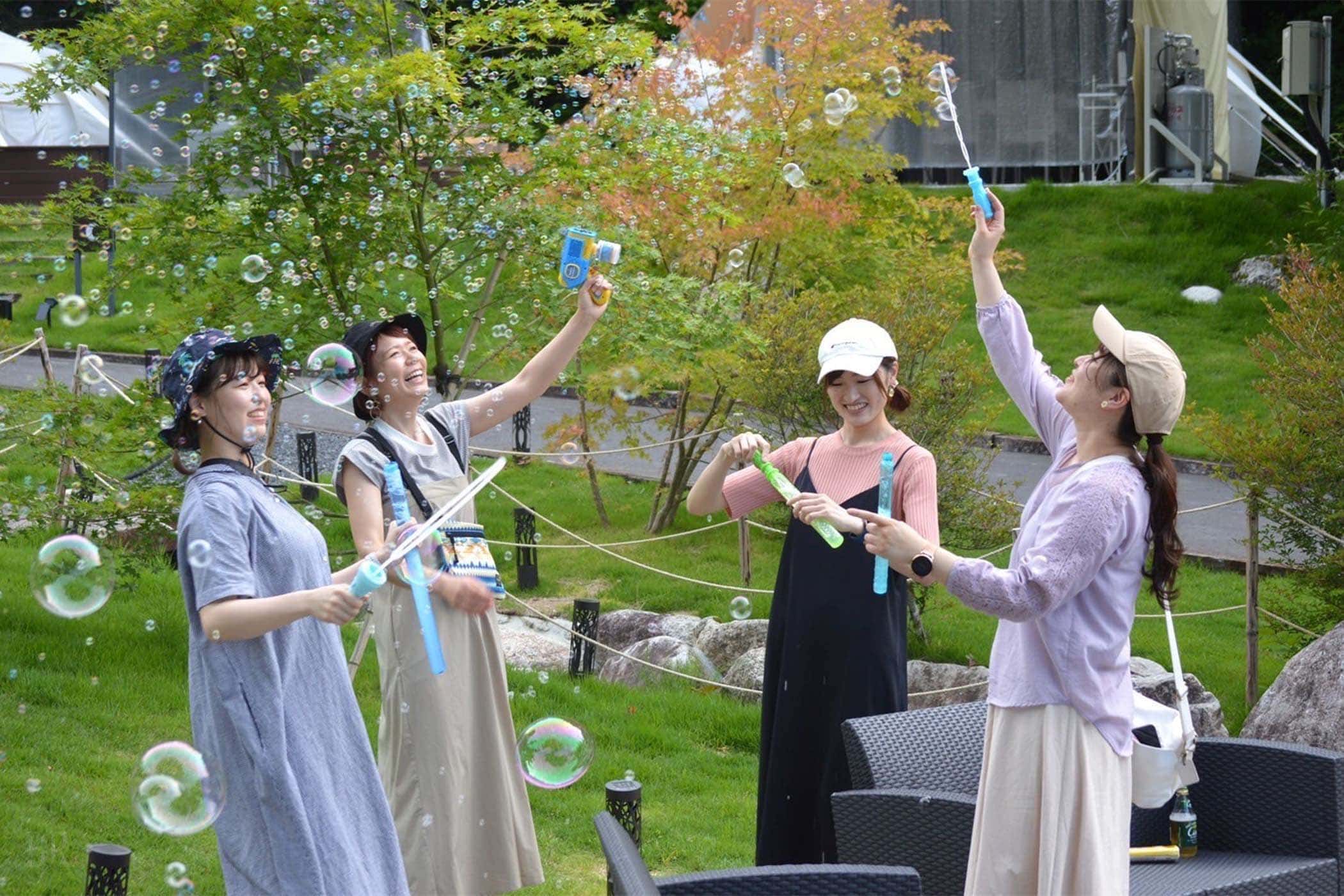 アウトドア初心者でも安心・気軽にご利用いただけるよう、充実した設備や備品、アメニティをご用意。タオルや歯ブラシなどの基本的なものはもちろんのこと、化粧水や乳液などの女性に嬉しいアメニティも取り揃えております。