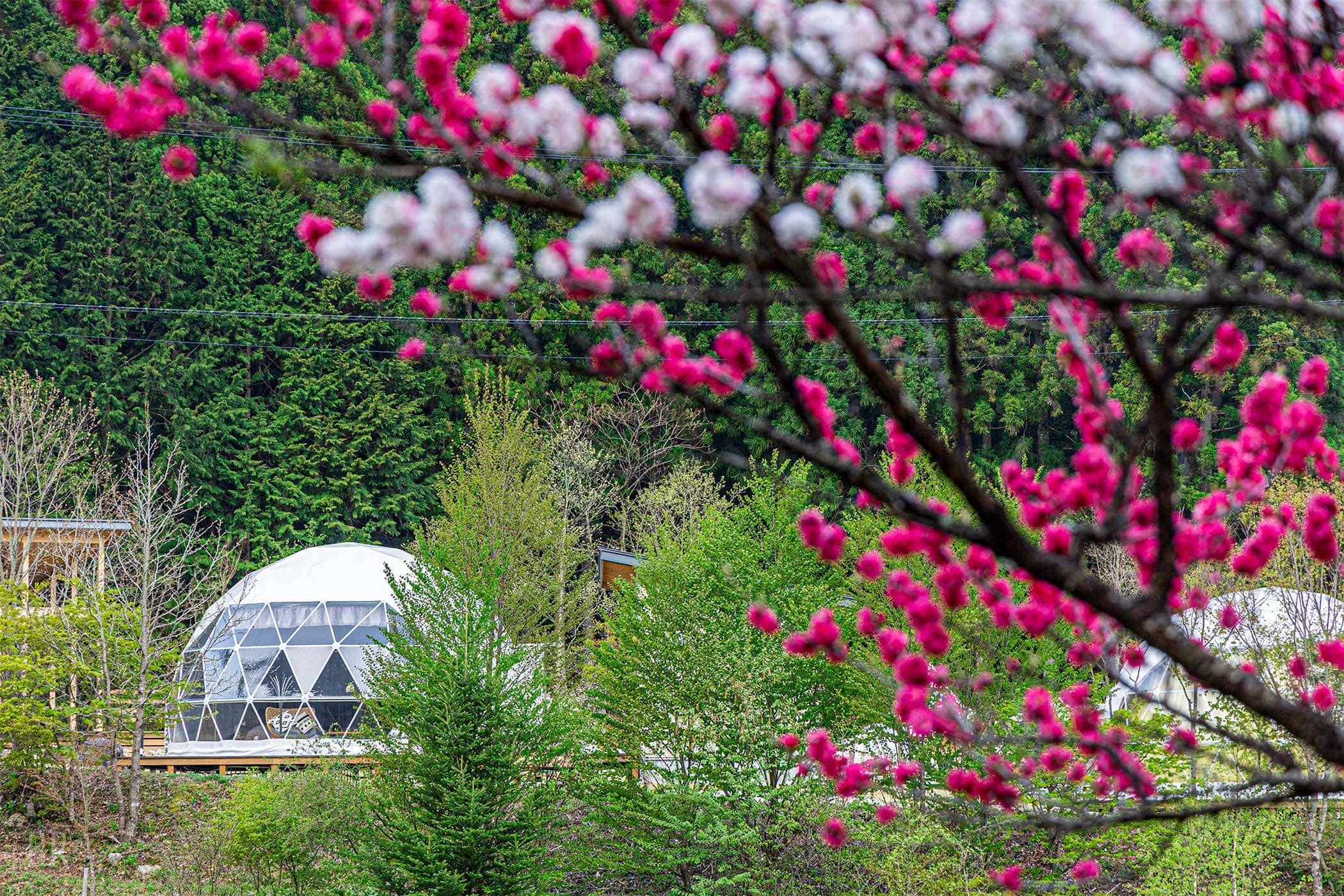 また4月〜5月は徒歩圏内にある「花桃の里」で5,000本の花桃が咲き乱れ桃源郷となります。